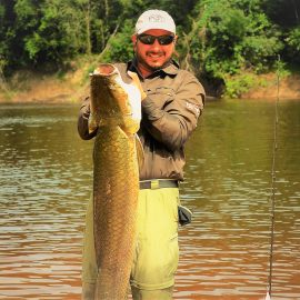 We have a mix of baitcasters and fly-fishermen. Camp reports that best working lures are helice, joao pepino, choppers, and poppers for our fly-fishermen. Lots of intense surface action. Other species caught include, piranhas, bicudas, peixe cachorro, trairas.