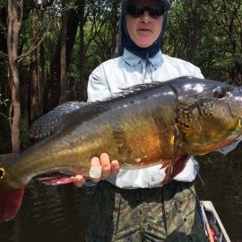 Weather conditions at our Marmelos private fishery are excellent. Water levels are a bit to high which is normal for this time of the year but fishing is still the best available in the Amazon. Trophy fish have not been larger than 17 lbs but fishing should improve.