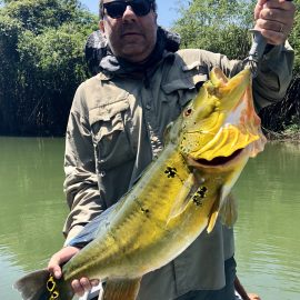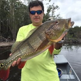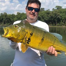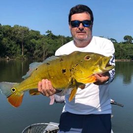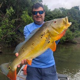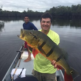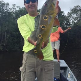 Last week we received the Barrantes group of 8 anglers for the last week of this season at our Marmelos private fishery. They enjoyed a great week landing 1.048 peacock bass the largest of which weighed 19lbs. as pictured below in the gallery. Bait-casters and fly-fishermen in the group were up the challenge and including in the basket also jacundas, bicudas, piranhas and several matrinxas.