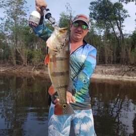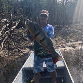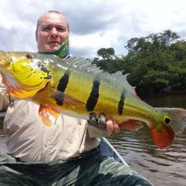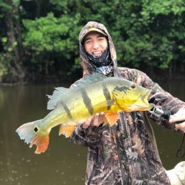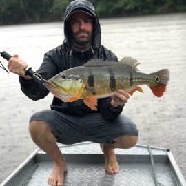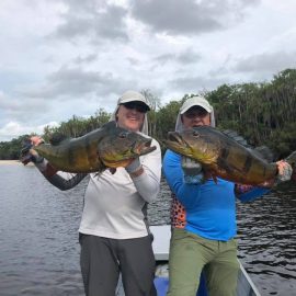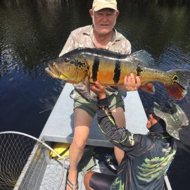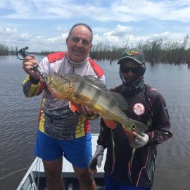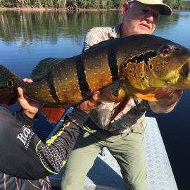 Note: this 2 1/2 days report is to rush last weekend’s conditions to our incoming anglers. Roçado private fishery in Dry-Zone N.West – Last Saturday we received the Sanders group of 6 anglers, who after enduring some rain episodes landed a total of 143 peacock bass in just 2 1/2 days the largest of which was 22lbs. Fishing conditions are good although water levels have risen a bit and more rain is expected on the coming days. . Xeruini river in Dry-Zone N.West – The Vasconcellos group of 12 anglers arrived on Saturday and broke waters at this fishery with a slow start and enduring some rain episodes. Fishing conditions are good and yields are expected to pick up on the coming days. Largest peacock bass weighed 15lbs. Jufaris (upper and mid) in Dry-Zone N.West – Last Saturday the Startsev group of 7 anglers arrived to our single occupancy floating suites in the upper part of the river enjoying a great start with 248 landed peacock bass and also bicudas, piranhas, cachorras, and matrinxas. Simultaneously the Molinari group of 8 anglers arrived to the mid section of this fishery and landed 414 peacock bass the largest of which weighed 16lbs., in just 2 1/2 days.