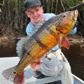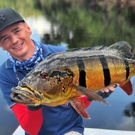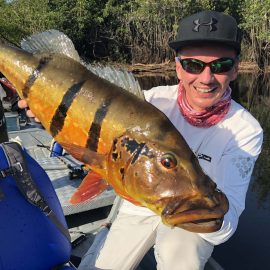Roçado private fishery in Dry-Zone N.West - received the Duggey group of 8 anglers for the second time this year, who had a trophy fest in the weekend, with 5 peacock bass over the 20lbs mark the largest of which was 23lbs., and although they endured some heavy rain episodes, an additional 15 peacocks of the total of 149 weighed above the 10lbs. mark. At the end of last week Eduard Ivanov landed an impressive 90+ centimeter long peacock bass, that is being evaluated for presentation to the IGFA , since it exceeds in length the current registered records for the Cichla Temensis, please check: http://wrec.igfa.org/WRecordsList.aspx?lc=AllTackleLength&cn=Peacock,%20speckled Images will be posted in next week´s fishing report. Omero Lakes in Dry-Zone N.West - with water levels improving daily the Hoyos group of 10 anglers had a most challenging weekend with a total peacock bass tally of 971, plus the welcome variations that included, pirapitingas, aruanas, pirarucus, tambaquis, surubims, and black piranhas. Upper Jufaris private fishery in Dry-Zone N.East - in our single occupancy Fly-in Floating Suites camp we received the Hitt group of 6 anglers, whose tally totaled 301 peacock bass in the weekend the largest of which was 17lbs. Some rain episodes were endured and a very relaxed camp life was enjoyed.