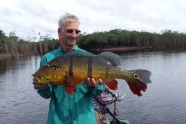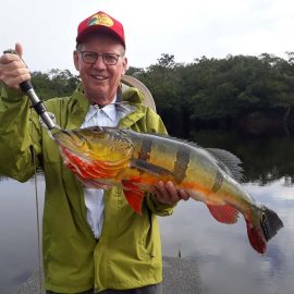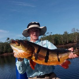Kabori fishery in Dry-Zone N.West – The Bundy group of 6 anglers arrived on Saturday landing 288 peacock bass in just 2 1/2 days. Largest peacock bass weighed 16lbs. and best performing lures are propellers and top water lures. Last week the Hixon group with some keen fly-fishermen landed over 800 peacock bass the largest of which exceeded the 18lbs. mark. NOTE: The other 4 Floating-Suites camps are navigating to their future destinations after the Christmas recess, at the Jufaris, Itapara, Kabori fisheries, while subject to the programmed mid-season refresh and maintenance process (generators, motors, tackle, linens, etc.).
