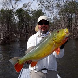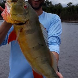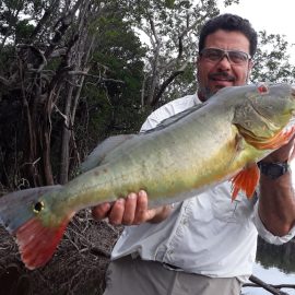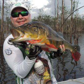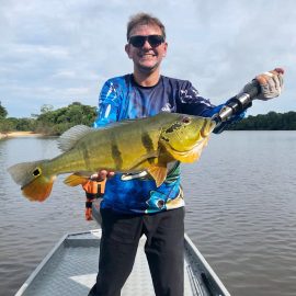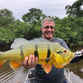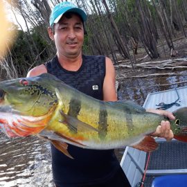 Roçado private fishery in Dry-Zone N.West – The Henry group of 7 anglers arrived last weekend and had a slow start with 60 landed peacock bass, though camp reports that they are following a trophy oriented strategy focused on sizes more than quantities. They endured some rain episodes and the largest peacock bass weighed 19lbs. Fishing conditions are still good although water levels have risen a bit and more rain is expected on the coming days. . Xeruini river in Dry-Zone N.West – The Case group of 8 anglers arrived on Saturday landing 318 peacock bass in just 2 1/2 days. Largest peacock bass weighed 15lbs. and best performing lures are propellers and top water lures. Jufaris (upper and mid) in Dry-Zone N.West – Last Saturday the Zucker group of 6 anglers arrived to our single occupancy floating suites in the upper part of the river enjoying a great start with 273 landed peacock bass largest of which weighed 17lbs, also come spectacular aruanas made the basket. On the mid section of the river the Roger group of 7 anglers landed 560 peacock bass in just 2 1/2 days enduring some heavy rain episodes also.