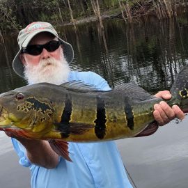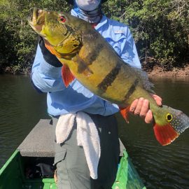 Kabori fishery in Dry-Zone N. East -: Last week the Kuipers group of 8 anglers broke the 2K mark and ended the week with a 2.059 peacocks in the basket. Last Saturday the Shutt group arrived and in just 2 1/2 days landed 676 peacock bass, all fly fishermen in the group. Water levels are a bit below the ideal and dropping, fishing conditions are expected to be good in the coming days. Mid -Xeruini fishery in Dry-Zone N. East -: Last week, the Thigpen group landed the first 19 pounder, the second one was landed by the White group at the Itapará. The Cofer group had a good start with a nice size mix in the bag. Levels are dropping and weather forecast confirms the tendency. Itapará river in Dry-Zone N. East – : Just 4 anglers in the Sylvara group have the camp and the river to themselves, 174 landed peacock bass is their mark for the weekend, fishing conditions are really good and water level is at an ideal point, no rainfall in the horizon. Upper Jufaris in Dry-Zone N.East – : Our single occupancy suites received last Saturday 5 anglers in the Osborne group.They jump started with 270 landed peacock bass, the largest of which weighed over 17lbs. Camp reports that locally tied jigs were the stars this weekend. Good fishing conditions are expected to continue in the coming days.
