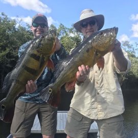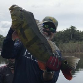 Kabori fishery in Dry-Zone N. East -: The Rankin group of 8 anglers arrived on Saturday landing 566 peacock bass in just 2 1/2 days. Largest peacock bass weighed 17lbs. and best performing lures are propellers and top water lures. Water levels are a bit below the ideal mark but yields are good, levels are dropping very slowly. Mid -Xeruini fishery in Dry-Zone N. East -: The Dean group of 8 anglers landed two trophies above the 17lbs. mark in just 2 1/2 days. Best performing lures are propellers and top water lures. Water levels have stabilized and weather forecast confirms tendency. Itapará river in Dry-Zone N. East – : Received the Kelley group which started the week landing 592 peacock bass largest of which was 18lbs. Water levels are a bit above the ideal and dropping, weather forecast supports the tendency. Upper and Mid Jufaris in Dry-Zone N.East – : Our single occupancy suites received last week the Cox group and they had a great start with several peacock bass above the 10lbs mark. Fishing conditions are excellent and forecast for the coming days is good. Simultaneously the Kring group in the Mid Jufaris are taking a more relaxed approach and enjoying the whole experience taking it more easy. Water levels are a bit on the low side and stable.