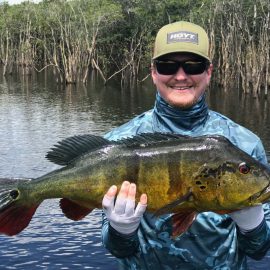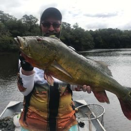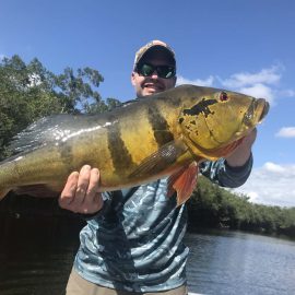 Kabori fishery in Dry-Zone N. East -: The Kuipers group of 8 anglers arrived on Saturday landing 755 peacock bass in just 2 1/2 days. Last weeks final count was 1.968 by the Rankin group. Best performing lures are propellers and top water lures. Water levels are still a bit below the ideal mark but stable, fishing results continue to be solid. Mid -Xeruini fishery in Dry-Zone N. East -: The Thigpen group has landed this year´s benchmark of 19 lbs this weekend. Water levels are very fishable and expected to drop slowly. Itapará river in Dry-Zone N. East – : Received the White group of 6, started the week landing 223 peacock bass. Last week´s final count was 1.450 peacock bass with 5 trophies above the 17lbs mark. Water levels are still a bit above the ideal but they keep dropping, weather forecast supports the tendency. Upper Jufaris in Dry-Zone N.East – : Our single occupancy suites received last Saturday the Ledet group of 4 anglers, under excellent fishing conditions they started with a 198 peacock bass basket with a good size mix. Star lures are perversas and joao pepinos. Good fishing conditions are expected in the coming days.