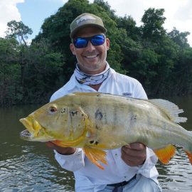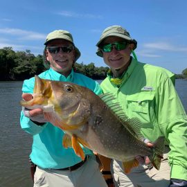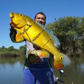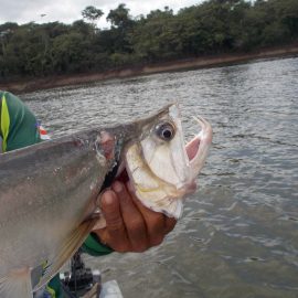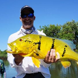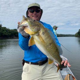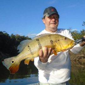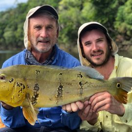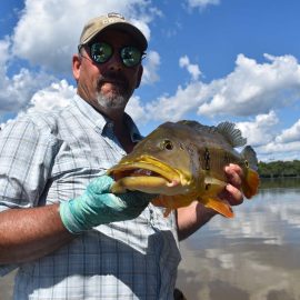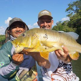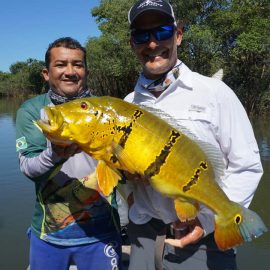 Marmelos fishery in Dry-Zone S. East -: Last weekend we received the Long group of 6 anglers which broke the 17 lbs. mark for this season at the Marmelos river. Last week, the Lesikar group left with a mean of 143 peacock bass per angler int he week. No significant rain episodes in the forecast and dropping water levels indicate that fishing conditions will keep improving by the day.