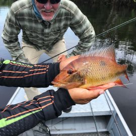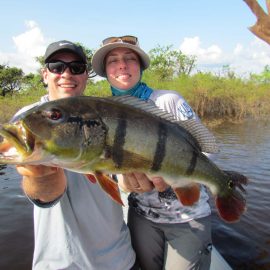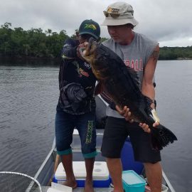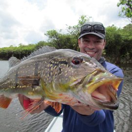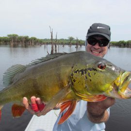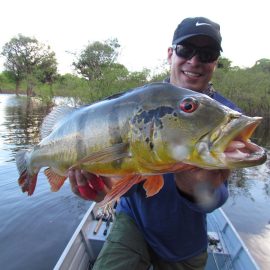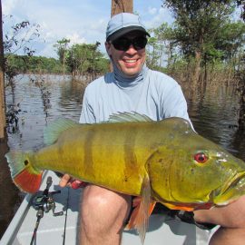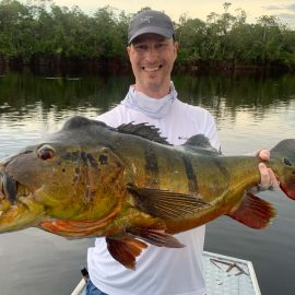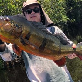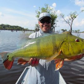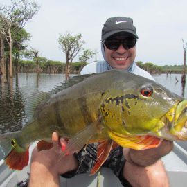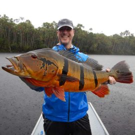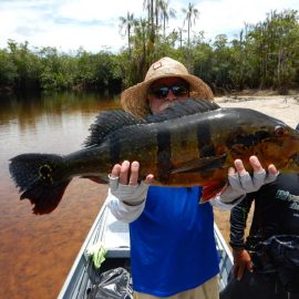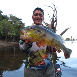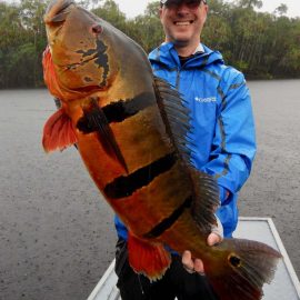 Matupiri fishery in Dry-Zone S. West -: Last Saturday we received the Franceschini exclusive group of 2 anglers in our Floating cabins fishing the mid Matupiri. Their basket mainly consisted of 102 medium sized peacock bass, sighting several schools of fish predated by abundant botos (pink dolphins). Although visually enjoyable, it had a negative impact on their fishing yields. They enjoyed good weather conditions with no significant rain episodes, water levels continue to be a bit high but very fishable. Water levels are expected to keep the dropping tendency and some significant rain episodes are expected towards the weekend. Last week the Babek group of 4 anglers ended the week with an outstanding 1645 landed peacock bass. Roçado fishery in Dry-Zone N. West -: Last Saturday we received the Smith group of 8 at the Roçado private fishery in Dry-Zone N.West, in the 2 1/2 days of this report they already have landed an outstanding 26lbs trophy plus a 21 pounder, and a 19 pounder, although they endured some heavy rain episodes, rainfall forecast shows that conditions will improve for the rest of the week (see forecast below). Last week´s largest trophy weighed 21lbs. Note: this fishery is under the strict single hook sportmanship policy.