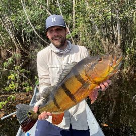 Water levels keep dropping slowly in our fisheries in the Dry-Zone S.West. The Matupiri river has stabilized and is still a bit high, it is expected regain the dropping tendency after the rain episodes of this week. Considering the weather forecast fishing conditions are expected to remain good and improve in the coming days. Water levels in Dry-Zone N.West at our Roçado private fishery are a bit high and have stabilized, several heavy rain episodes in the last days and forecasts imply that they will have little sunshine and water temperature will not rise until the sun shines again, expected for next Friday, this has a direct link with the fish activity and willingness to take the lures.