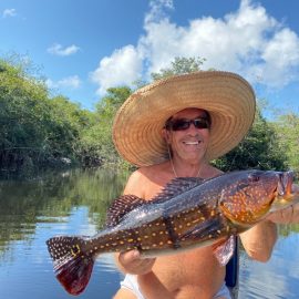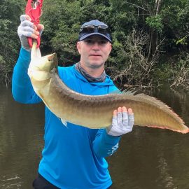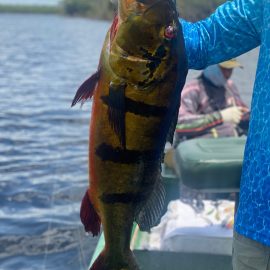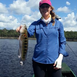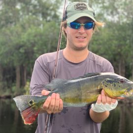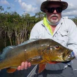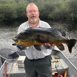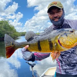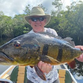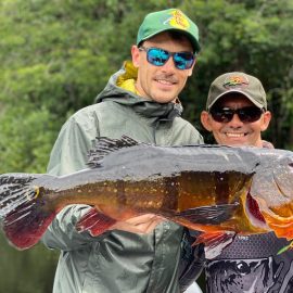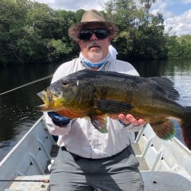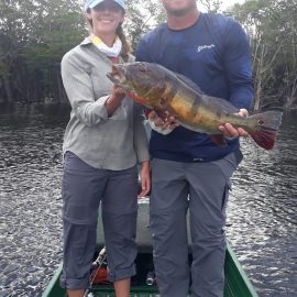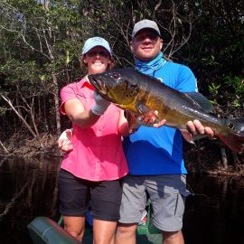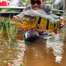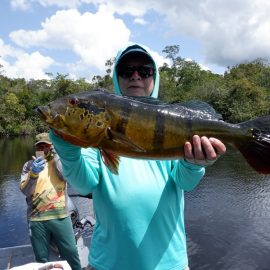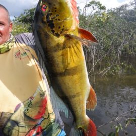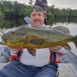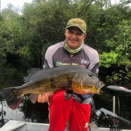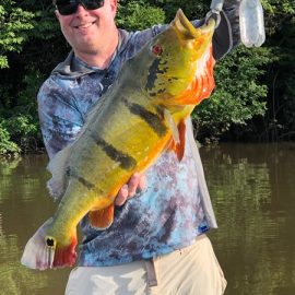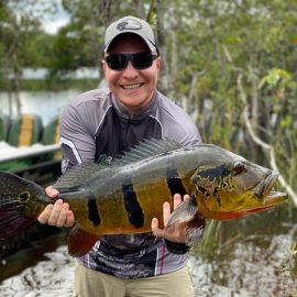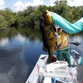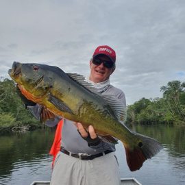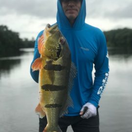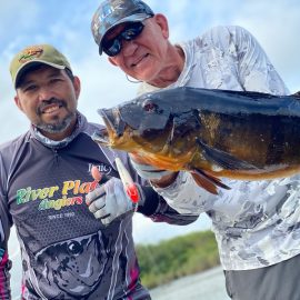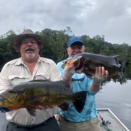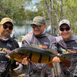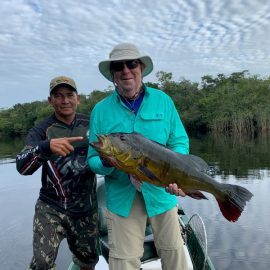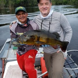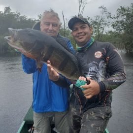 Itapará in Dry-Zone N. East -: Last Saturday we received the Sherman group of 8 anglers. They had a slow start having to endure some significant rain episodes that seriously affected their yields. Water levels are still a bit high; dropping tendency is expected to resume once the rain passes in the next days. Please see forecast below. Omero/Maú fishery in Dry-Zone N. East -: Last Sunday we received the Rose group of 6 anglers. They had a great start landing over 500 peacock bass plus a varied mix in the basket including aruanas, pirarucus, piorapitinga, matrinxa, etc. Joao pepino and jigs are the best working lures. Forecast promises that they will be enjoying great fishing conditions until the weekend when some rain is expected.