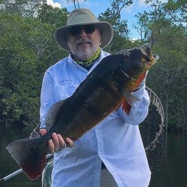 Jufaris in Dry-Zone N. East -: Yesterday afternoon we received two groups ( Johnson and Henry are the leaders) in the Upper and Mid Jufaris Private Fishery, we do not have yet fishing data available for this report. Water levels are a bit high but very fishable, and dropping. Weather forecast shows bright sunshine in the coming days (see below). Omero/Maú fishery in Dry-Zone N. East -: Last Saturday we received the Frederick group of 8 anglers. They had a nice start landing 440 peacock bass plus a varied mix in the basket including aruanas, pirarucus, etc. Perversas and jigs are the best working lures, and there are several fly fishermen in the group. Forecast promises that they will be enjoying great fishing conditions in the coming days. It is worth noting that eventhough the water cycle has been delayed this season, the fact of having several private fisheries in different dry-zones and our traditional mobility, has allowed us to offer our anglers the very best available water in the basin, proved once and again with good yields, and excellent feedback.
