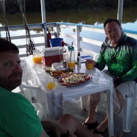 Itapará in Dry-Zone N. East -: Last Saturday we received the Kojetin group of 7 anglers that included Mario and Paulo Martins visiting us one more time. They had a slow start having to endure some heavy rain episodes that affected their yields. Water levels are a bit high, and dropping tendency is expected to resume once the rain passes in the next days. Please see forecast below. Upper Jufaris fishery in Dry-Zone N. West -: Last Sunday we received the Carringer group of 6 anglers, with Richard Carringer and Richard Schumacher repeating once again. They have a special schedule for a shorter week. Group has been exploring the Upper Jufaris area with excellent results; enduring some heavy rain episodes which presented no obstacle to obtaining several trophies, largest of which exceded the 20lbs. mark. Joao pepino and jigs are the best working lures.