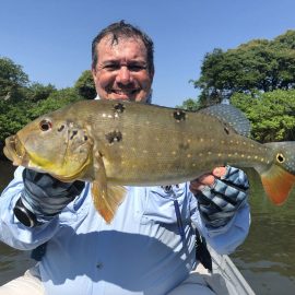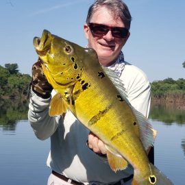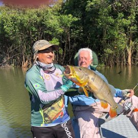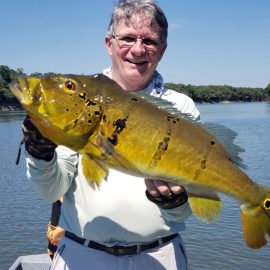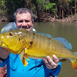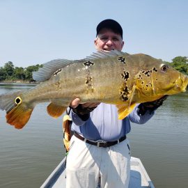 Marmelos fishery in Dry-Zone S. East -: Last week the Spann Jr. group ended the week with a 2.026 tally, argest of which weighed 18.5 lbs. . Last Saturday we received the Strong Jr. group which landed 531 peacock bass with two 18 pounders. Weather forecast shows no significant rain episodes in the coming days and water levels continue their mild dropping tendency presenting almost perfect levels for the coming days.