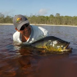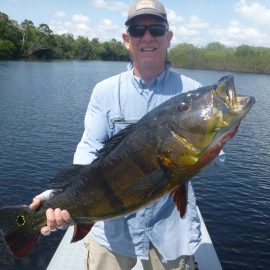 The Simpkins group (6 anglers) fishing last week at the Jufaris landed 948 peacock bass the largest of which weighed 16lbs. Water levels at the Jufaris continue to a bit high but dropping. This week´s arriving groups endured some heavy rain episodes and had a slow start, fishing conditions are expected to improve significantly during the rest of the week, see forecasts below.