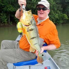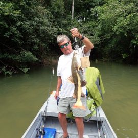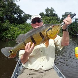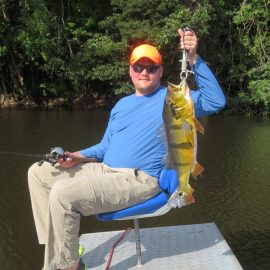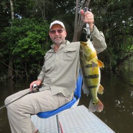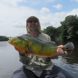 Itapará in Dry-Zone N. East -: Last Saturday we received the Sherman group of 8 anglers. They had a slow start having to endure some significant rain episodes that seriously affected their yields. Water levels are still a bit high; dropping tendency is expected to resume once the rain passes in the next days. Please see forecast below. Omero/Maú fishery in Dry-Zone N. East -: Last Sunday we received the Rose group of 6 anglers. They had a great start landing over 500 peacock bass plus a varied mix in the basket including aruanas, pirarucus, piorapitinga, matrinxa, etc. Joao pepino and jigs are the best working lures. Forecast promises that they will be enjoying great fishing conditions until the weekend when some rain is expected.