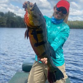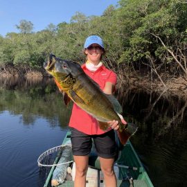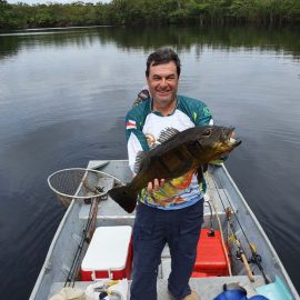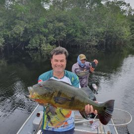 Omero lakes in Dry-Zone N. East -: Last weekend we received the Vyacheslav group of 6 anglers, landing 415 peacock bass in just 2 1/2 days largest of which weighed 18lbs. Host reports mid water lures (yo-zuri, joao pepino) and jigs are working best. Fishery continues to yield an amazing assortment of species, that includes, Pirarucu, Aruanã, matrinxã, pirapitinga, piranha, traíra e bicuda. After increasing a bit due to last fortnights rainfall, water levels are dropping again which has been beneficial yieldwise. Rainfall forecast shows no significant rain episodes in the days to come. Itapará in Dry-Zone N. East -: Camp is in standby, water levels resumed dropping tendency and camp is moving further upriver towards the best available waters near the fountain head. Rainfall forecast further reinforces positive forecast for next week. Lower Jufaris fishery in Dry-Zone N. East -: Last Saturday we received the Moreira group of 8 anglers, including Rodrigo Moreira dn Fernando Quevedo visiting us one more time. Unfortunately communication with this operation is not working and weekend data is unavailable at this time. Weather conditions are fine for the week according to forecast appearing below. Upper Jufaris fishery in Dry-Zone N. West -: Last Sunday we received the Garret group of 6 anglers. They had a good start landing 148 peacock bass only fishing 1 1/2 day. Forecast for the rest of the week looks good though water levels are a bit on the high side after last week´s rain episodes, yet they are very fishable. Camp host reports that mid water lures, rapalas and yozuri are working best in this scenario. Kabori fishery in Dry-Zone N. East -: Camp is in standby and navigating upriver seeking the very best available waters in this fishery for the group arriving next Saturday.