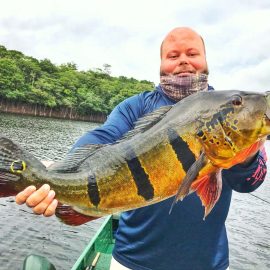 Omero lakes in Dry-Zone N. East -: Last weekend we received the Saldanha group of 8 anglers, landing 195 peacock bass in just 2 1/2 days and enduring some moderate rain episodes. Host reports good top water action propellers being the favored lure. Fishery continues to yield a varied assortment of sporting species, including the sleek aruanas and sturdy red tails, water levels are stable and expected to resume dropping tendency in the coming days. Itapará in Dry-Zone N. East -: This Saturday we received the Shulyak group group of 8 anglers coming from Russia, Yuriy, Serhiy, Grzegorz and Josef are visiting us again. Water levels still a bit on the high side, and have risen due to last week´s hard rain episodes, but fishable. Weather outlook is fine and dropping tendency is expected to resume in the coming days. Lower Jufaris fishery in Dry-Zone N. East -: Last Saturday we received the Molinari group of 8 anglers, including Lopes, Savier and Pinto visiting us one more time. They started by landing 128 peacock bass. Forecast for the rest of the week looks good though water levels are a bit on the high side after last week´s rain episodes, yet they are fishable. Camp host reports that mid water lures, are working best. Upper Jufaris fishery in Dry-Zone N. West -: Last Saturday we received the Kuehn group of 6 anglers, including Jason McGovern visiting us one more time. They had a good start landing 262 peacock bass. Forecast for the rest of the week looks good though water levels are a bit on the high side after last week´s rain episodes, yet they are very fishable. Camp host reports that mid water lures, rapalas and yozuri are working best in this scenario. Kabori fishery in Dry-Zone N. East -: The Ishankulov group of 8 arrived last Saturday and started the week landing 108 peacock bass, largest of which weighed 16lbs. Water levels are a still bit on the high side but very fishable not dropping though due to the heavy rainfall last week. Good weather in the coming days (see forecast below). Joao Pepino and wood choppers are the chosen lures this week.