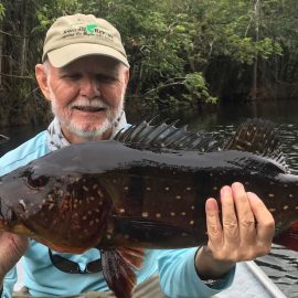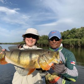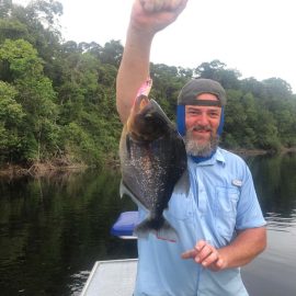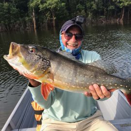 Matupiri fishery in Dry-Zone S. West -: Last Saturday we received the Lico group of 12 anglers in our Floating cabins fishing the mid Matupiri. They enjoyed good weather conditions with only one minor heavy rain episode, their fish count exceeded the 550 landed peacock bass, no significant trophies though. Rain forecast is good and dropping tendency is expected to accelerate with the good weather, water levels are still a bit high but nearing the optimum definitely very fishable. Last week the Rizzo group anglers exceeded the 100 landed peacock bas per angler in the week. Roçado fishery in Dry-Zone N. West -: This fishery is in standby status for this week, this week anglers were redirected to Dry Zone N.East. Last week the Lyle group, landed 5 trophies above the 20lbs mark, though they endured heavy rains episodes throughout the week. Water levels reverted the dropping tendency, forecast is improving and river is expected to resume the dropping tendency in the next days. Omero lakes in Dry-Zone N. East -: This week after scouting the area we have moved our Floating Suites Nr.3 to the Omero Lakes fishery that present excellent fishing conditions, proving one more time the importance of being able to offer the best available waters in the basin to our visiting anglers, having several private water options to choose from. The Crossland group arrived last Saturday and had an excellent start with 752 landed peacocks within a mixed bag of species including aruanas, pirarucus, etc. Fine weather and good water levels expected in the coming days.