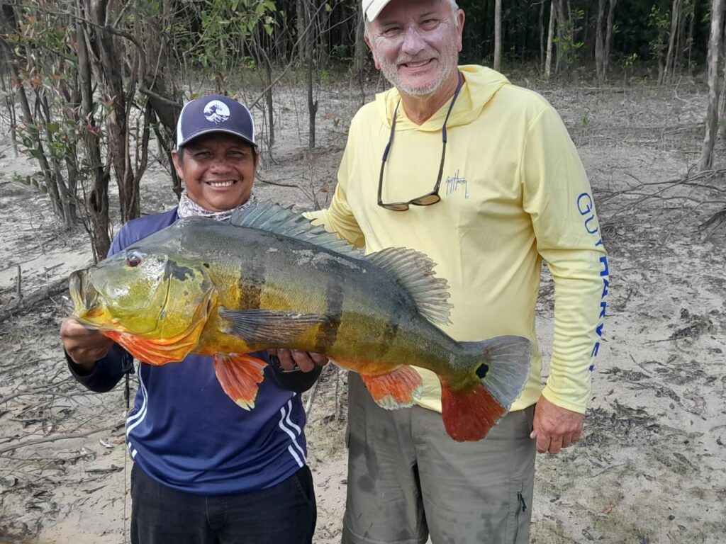 The McCollum group of 4 fly fishermen from Louisiana fished on our newest river on the Caitete National Park. They enjoyed supreme multispecies fishing in the shallow and gin-clear waters. They landed two 16 lb payara and 22 wolf fish over 16lbs, mostly all by sight on top water poppers. Plus, over 200 fish mostly peacocks bass, pacus, red tail catfish, matrincha, and black piranhas. The payaras should start coming into play soon, when water levels drops a bit more.