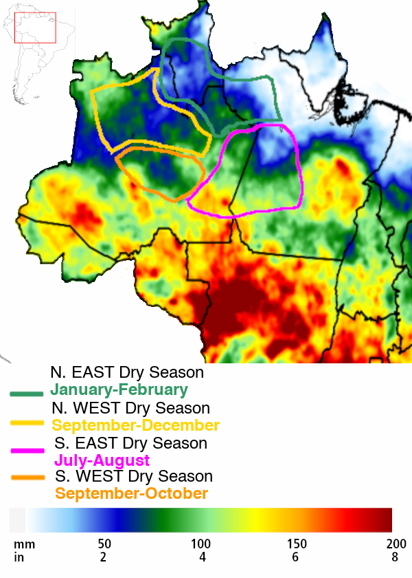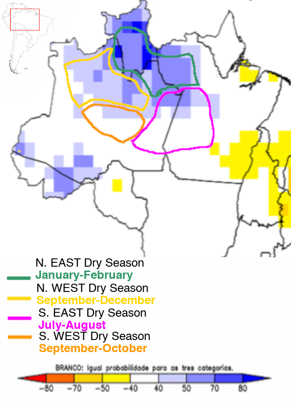 A 7-Day Forecast for more than 2 inches of rain means water levels may rise; under 2 inches means that water levels may drop. Across most of the Amazon rainfall forecast is well above the mentioned 2 inches, but since the North East Zone marked in green is just at 2 inches (see blue in map), we might stand a fighting chance!