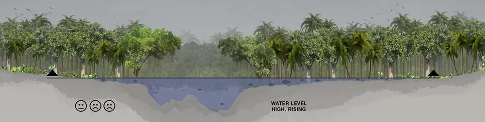 We have eight River Trains at the North East Dry Zone marked in green in the above map, with water levels at the jungle-line threshold as shown in the design below.